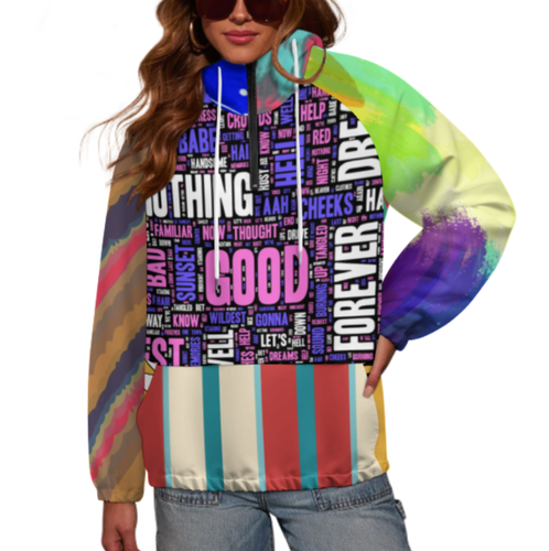 Chaqueta Manga Larga con Cremallera Casual Deportiva para Mujer LLJK Personalizada con Impresión Completa de múltiples imágenes con Foto Logo Patrón Texto