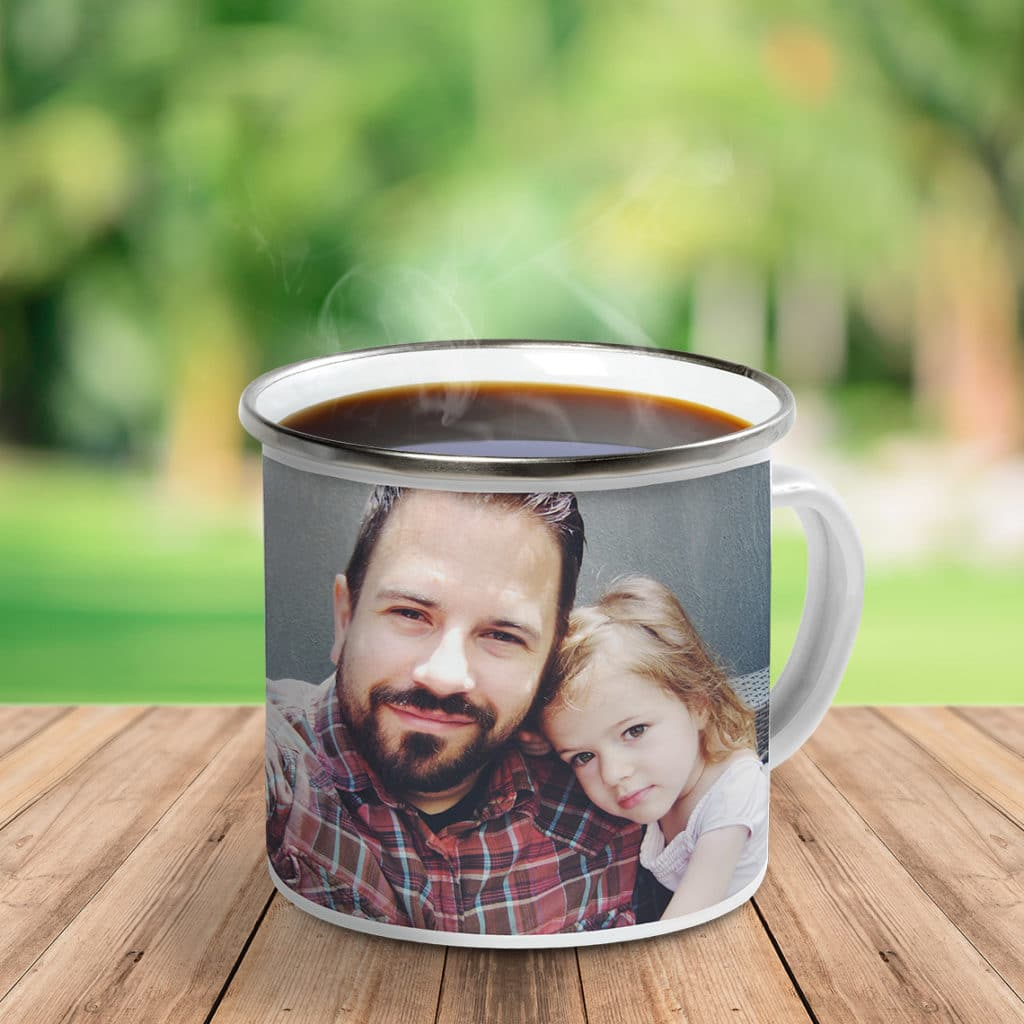 También puede personalizar una de 16 oz. taza de café grande con tapa o nuestra taza de 10 oz. taza de café aislada con tapa para llevar contigo en cualquier lugar. Además, está el de 12 oz. Taza de esmalte para fogata: tan linda y tan fácil de hacer la tuya.