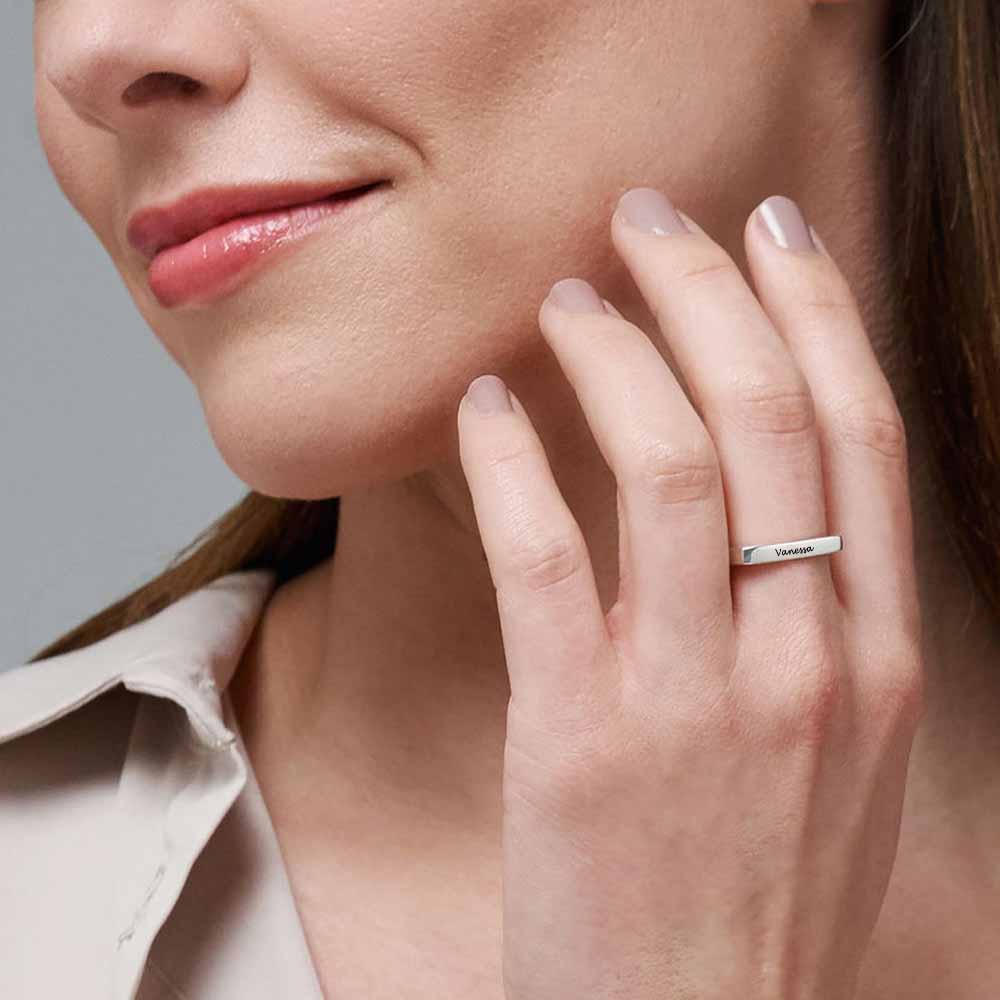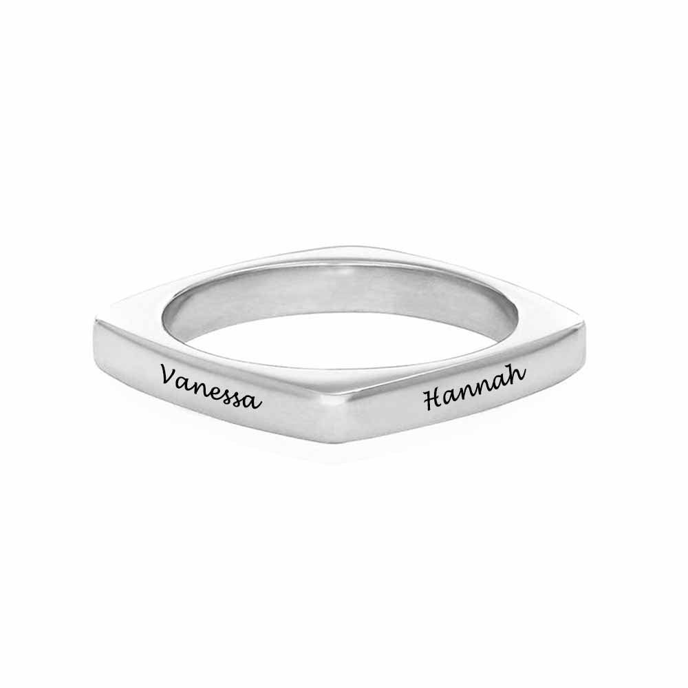 Anillo cuadrado plano de moda de plata esterlina para mujer hombre J0014 Personalizado Grabado con letras text nombre