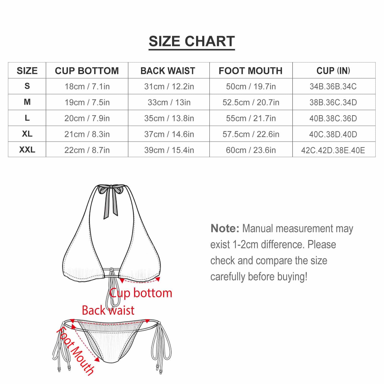 La parte superior del bikini triangular está confeccionada con tirantes ajustables en el cuello y la espalda. El tamaño y la copa se pueden ajustar a tu figura. El diseño tridimensional se adopta para hacerte sentir diferente. La tapicería suave da forma, forro de algodón natural, técnica de costura fina, agradable y cómodo para la piel. Hay correas laterales ajustables a ambos lados de la braga y la curva de la cadera es más pronunciada.