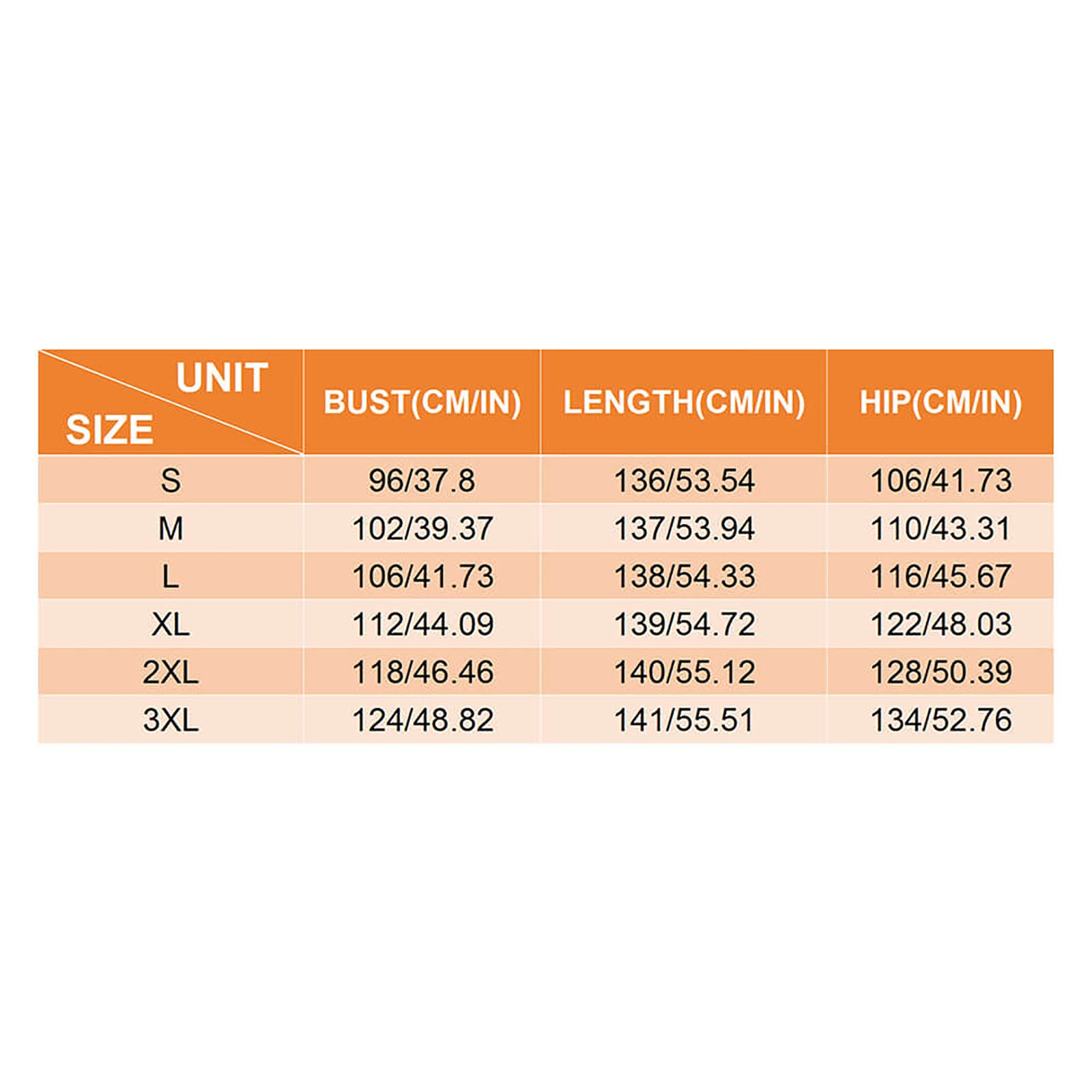 | Tamaño | Contorno de pecho (cm) | Largo (cm) | Contorno de cadera (cm) |