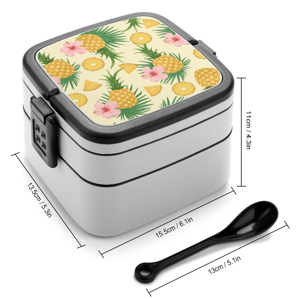 Caja de almuerzo de doble capa XB0602028 Personalizada con Impresión Completa con Foto Logo Patrón Texto, nuestras cajas de almuerzo hechas de polipropileno, son duraderas y el material de elección. El diseño de la caja bento de doble capa está sellado y es a prueba de fugas, lo que puede evitar que los alimentos se filtren en la caja y mantener la comida fresca. Este producto viene con una caja bento de doble capa y una cuchara para combinar fácilmente. El diseño inteligente del divisor evita que los alimentos se mezclen, separa las verduras, las frutas y los refrigerios para mantener el sabor original de los alimentos, ¡permitiéndole disfrutar de la delicia del bento! Fácil de transportar, diseño de hebilla, fácil de abrir y cerrar, con asa, muy liviano y portátil, fácil de transportar, no interferirá con su viaje.