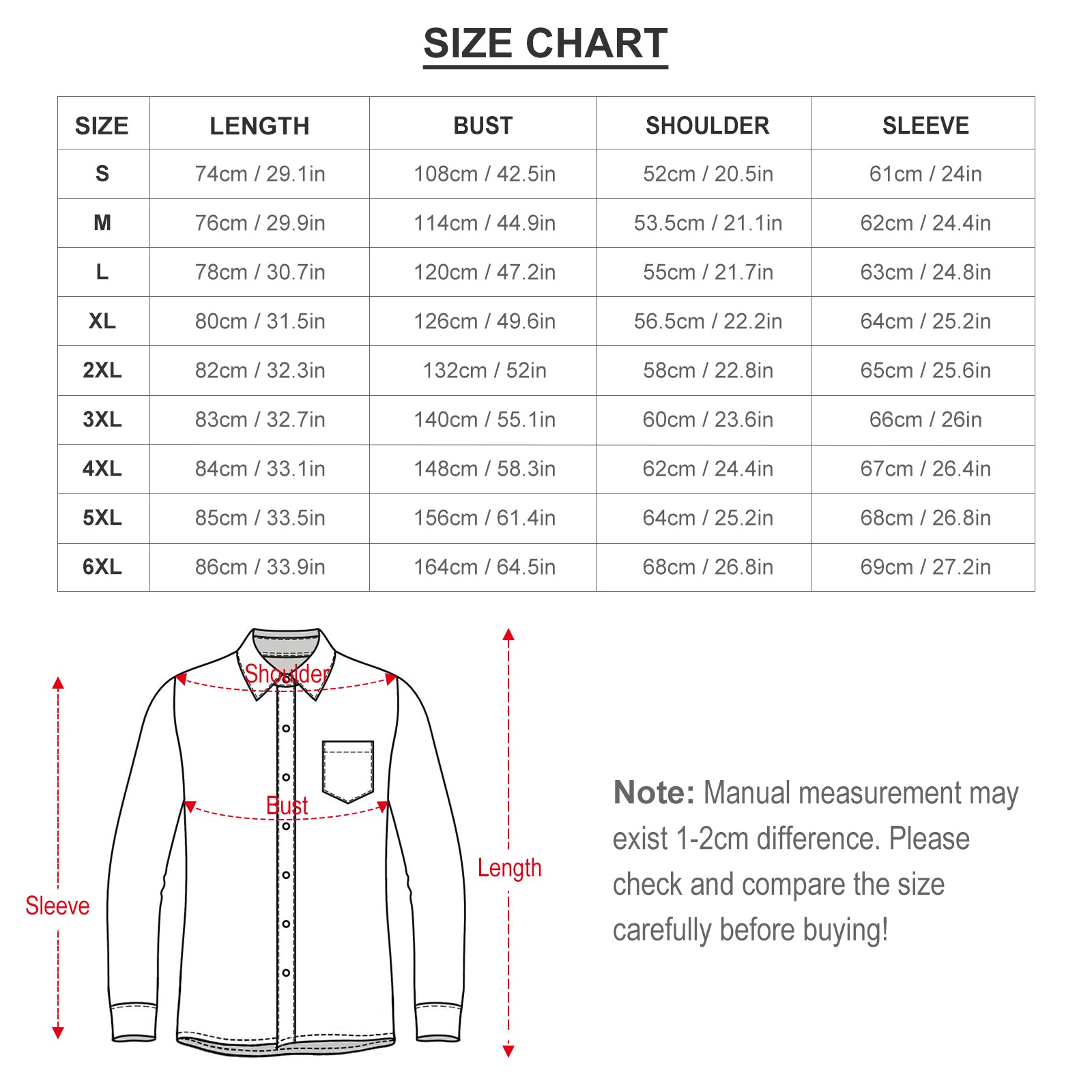 Nota: Este producto está en tallas europeas. Si tiene alguna pregunta, comuníquese con el servicio al cliente para una consulta. Estos datos de talla se miden en el estado desplegado. Debido a los diferentes métodos de medición, el error dentro de 1-2cm es un fenómeno normal. No utilice el mismo color que el de fondo de la ropa para las imágenes de diseño, causará la incapacidad de tinta durante la producción y los problemas anteriores son normales, no se incluirá en el alcance del tratamiento postventa.