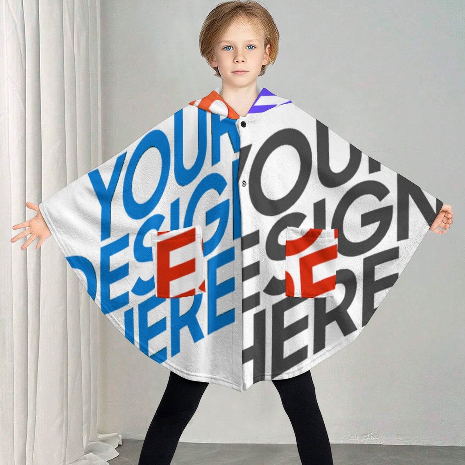 Manta con capucha para niños RTDP09 personalizado con patrón foto texto (impresión de imágenes múltiples)