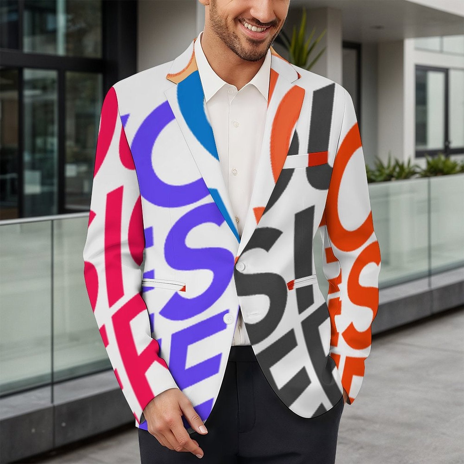 Nos complace presentar esta chaqueta de traje informal para hombre. Ideal para ocasiones deportivas, también se puede usar a diario. Destaca por sus amplias zonas de impresión. Da rienda suelta a tu creatividad y personaliza tu chaqueta con una impresión de alta calidad.