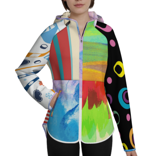 Chaqueta corta de polar con capucha para mujer MWL476 personalizado con patrón foto texto (impresión de imágenes múltiples)