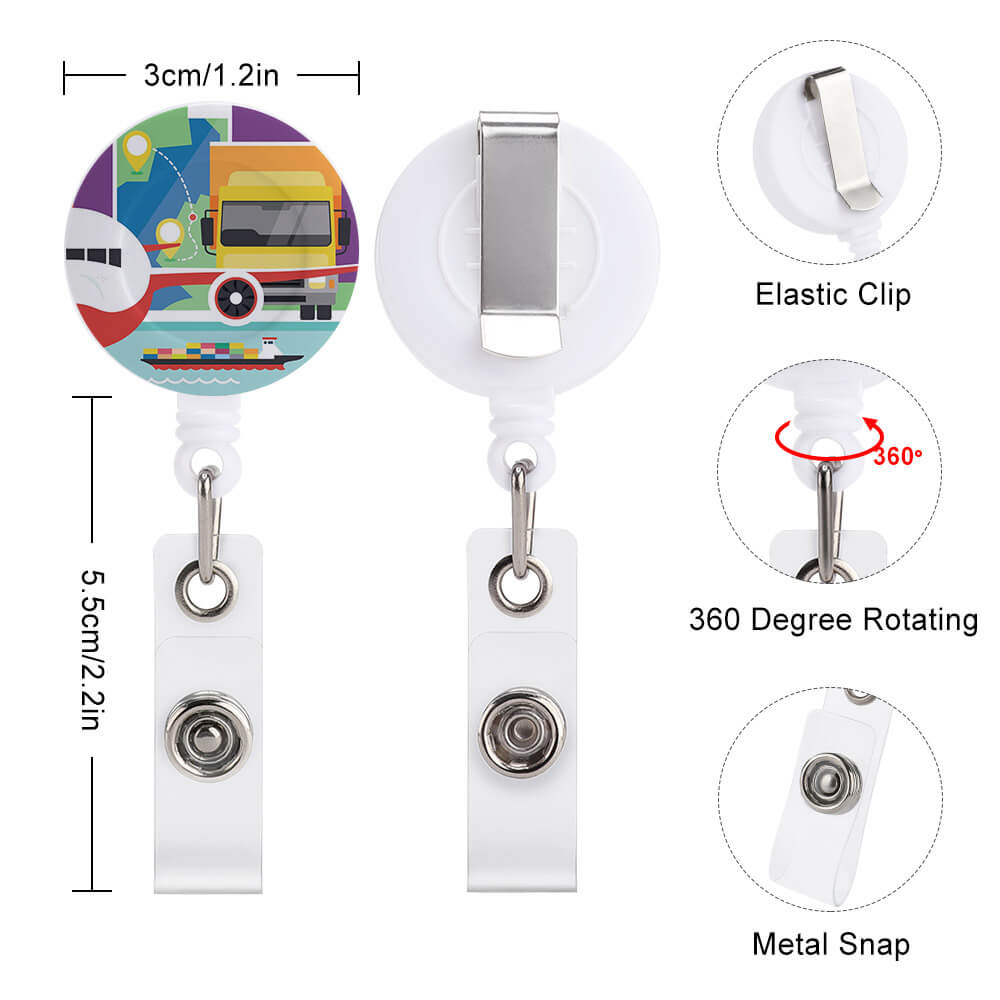 Carrete Plástico Retráctil de Soporte de Tarjeta de Identificación / Clip de Insignia JJ0529008 Personalizado Impresion Completa de Una Imagen con Foto Logotipo Patrón Texto
