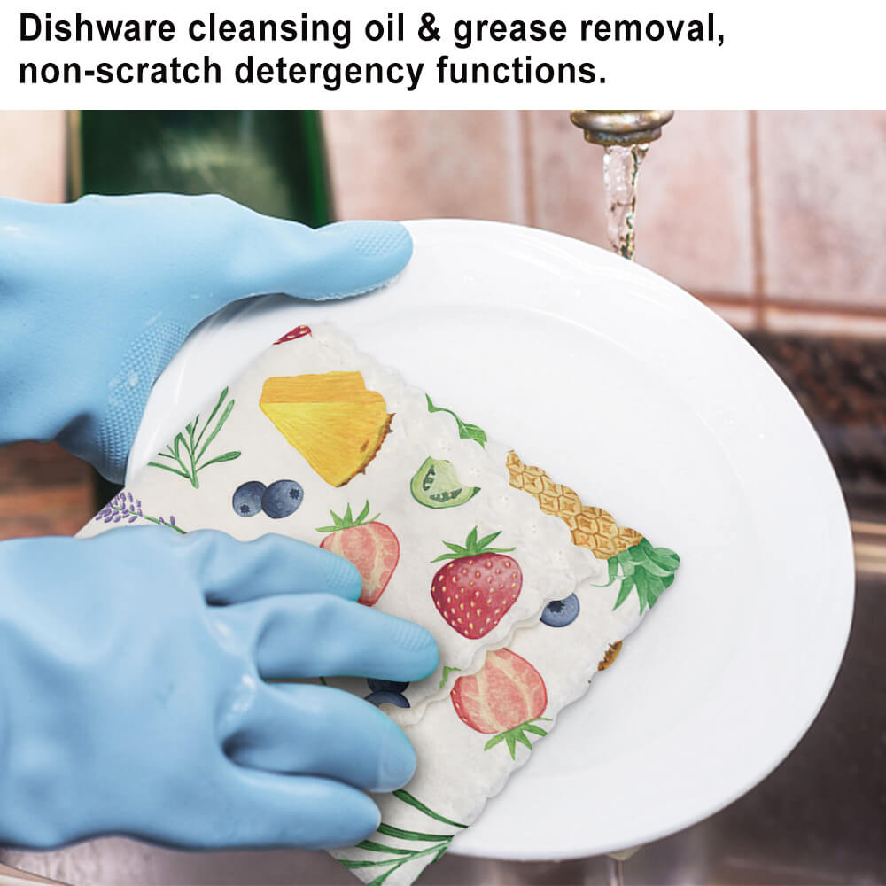 Este paño de cocina está hecho de franela que tiene una textura suave, no suelta el pelo y su tacto suave le da a la piel un cuidado cálido. Tiene un fuerte poder de limpieza y puede limpiar fácilmente las manchas Tiene buenas funciones antiestáticas y de absorción de polvo. La tela es suave y puede absorber agua varias veces el peso de la tela.