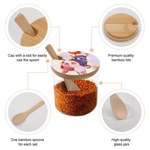 Este tarro de condimentos y especias está equipado con la tapa y la cuchara independientes hechas de madera, que tiene excelentes funciones de aislamiento térmico y eléctrico. Cuando se usa en la cocina, puede aumentar la seguridad y prevenir quemaduras o descargas eléctricas. Después de sacar el condimento con una cuchara, puede poner fácilmente la cuchara en el frasco y tapar la tapa porque hay un agujero en la tapa. La tapa tiene buena hermeticidad y los condimentos o especias se almacenan en el interior sin humedecer. Utilice material de vidrio sin plomo, fácil de limpiar, resistente a la oxidación, resistente a la corrosión, sanitario y no tóxico. La abertura para llenar el tarro de condimentos es amplia, por lo que es fácil llenar las especias sin derramar y ensuciar la mesa. El tanque transparente permite distinguir fácilmente los tipos de condimentos o especias, y es conveniente de clasificar y colocar, para que la cocina esté ordenada y limpia.