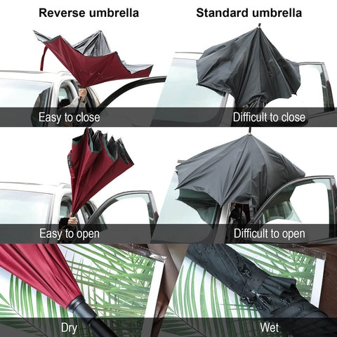La superficie del paraguas reverso del coche está hecha de tela PG, que tiene buenas funciones a prueba de viento y anti-ultravioleta. Este paraguas invertido es ligero, compacto, portátil, de secado rápido y fácil de transportar. Adopta un diseño plegable hacia adentro que no gotea. Después de doblar, su lado seco mira hacia afuera. Incluso si se llevan a la casa, no habrá lluvia ni humedad en el piso. El diseño del techo de doble capa se usa para evitar los rayos ultravioleta rayos y otros efectos nocivos. Al mismo tiempo, tiene un diseño a prueba de viento y puede soportar velocidades de viento superiores a 60 millas por hora.