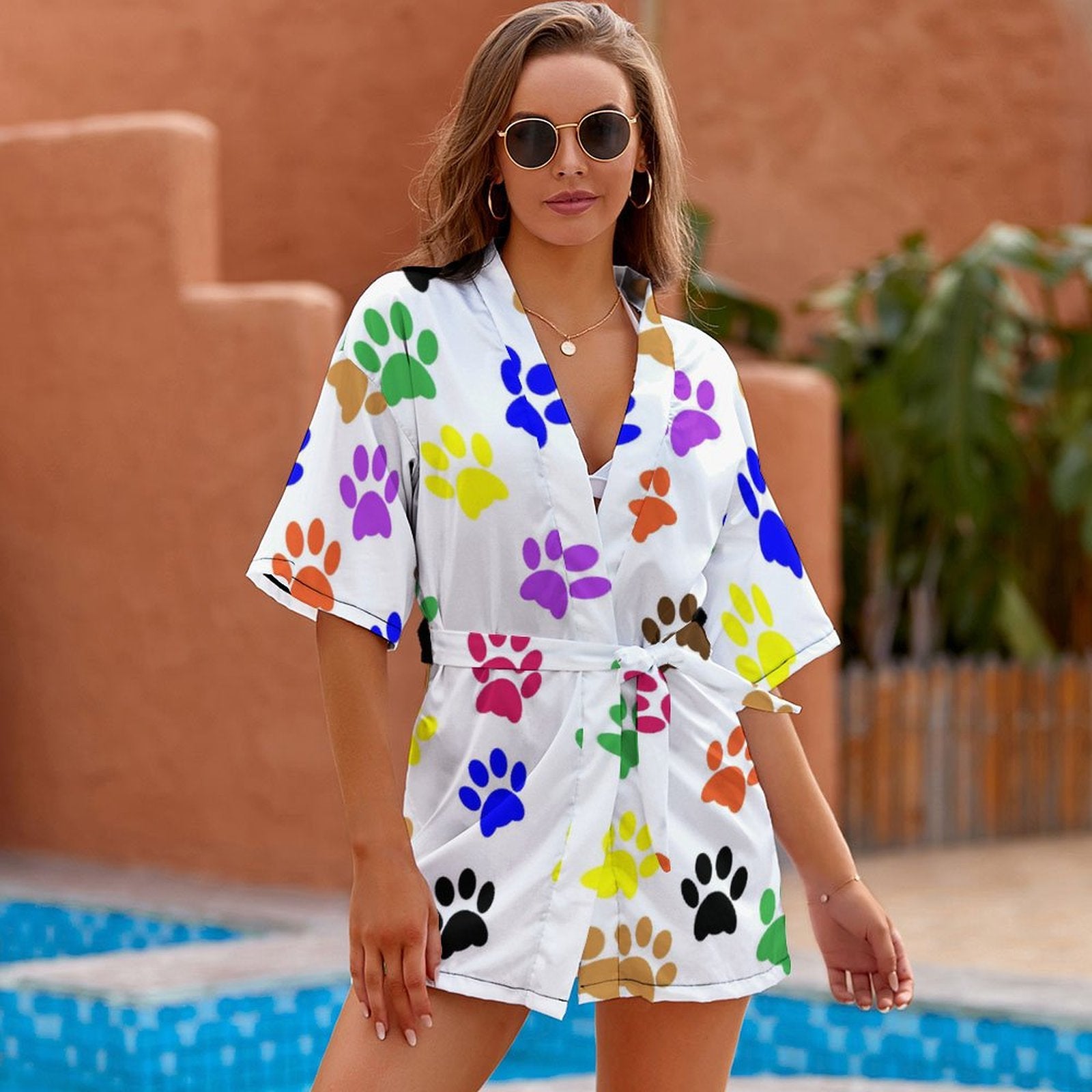 Ropa de Dormir Bata Kimono Corta Pijama Suave para Mujer JJ1210 Personalizada con Impresión Completa de una imagen con Foto Logo Patrón Texto