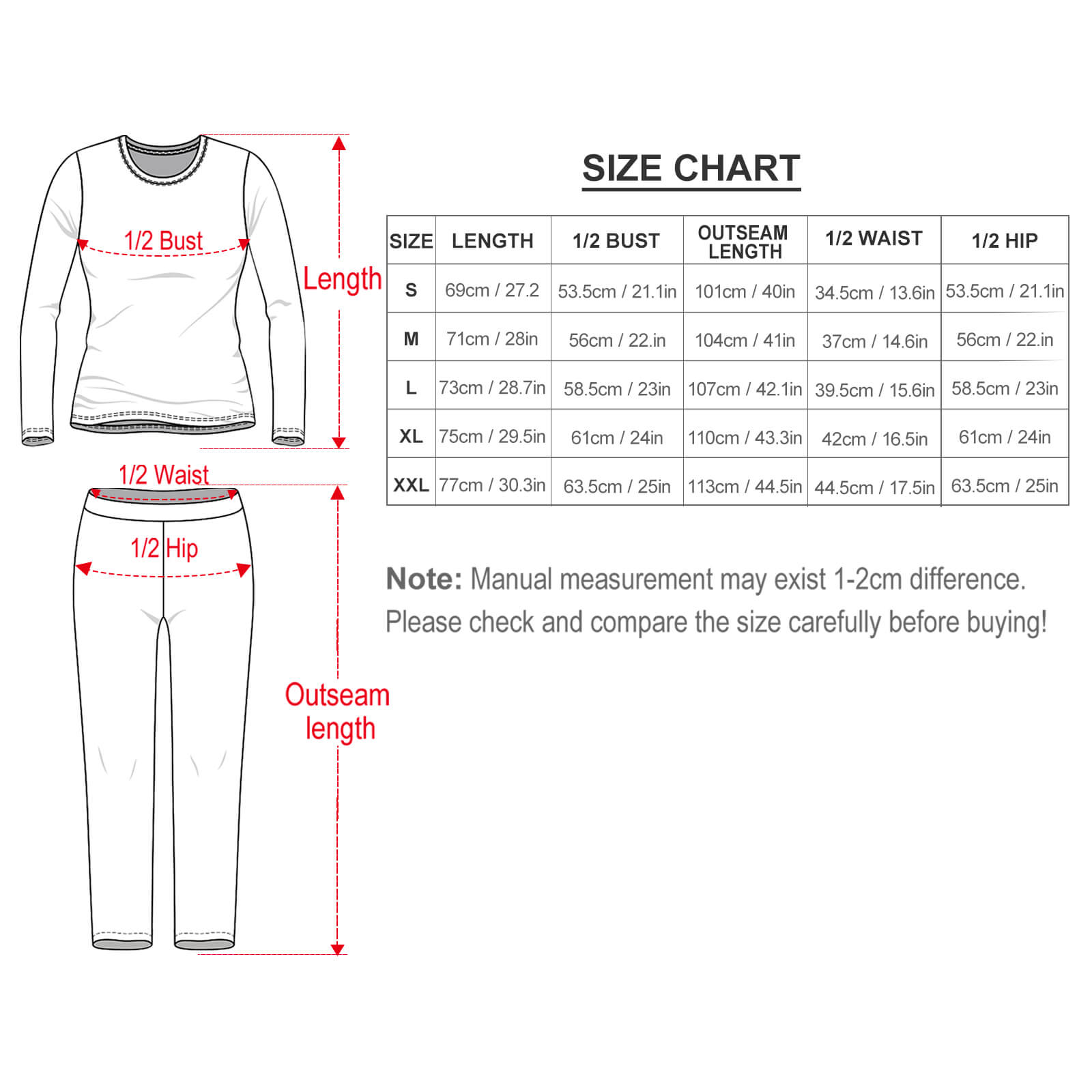 | Talla | Longitud(cm/in) | 1/2Busto(cm/in) | Longitud de pantalones(cm/in) | 1/2Cintura(cm/in) | 1/2Cadera(cm/in) |