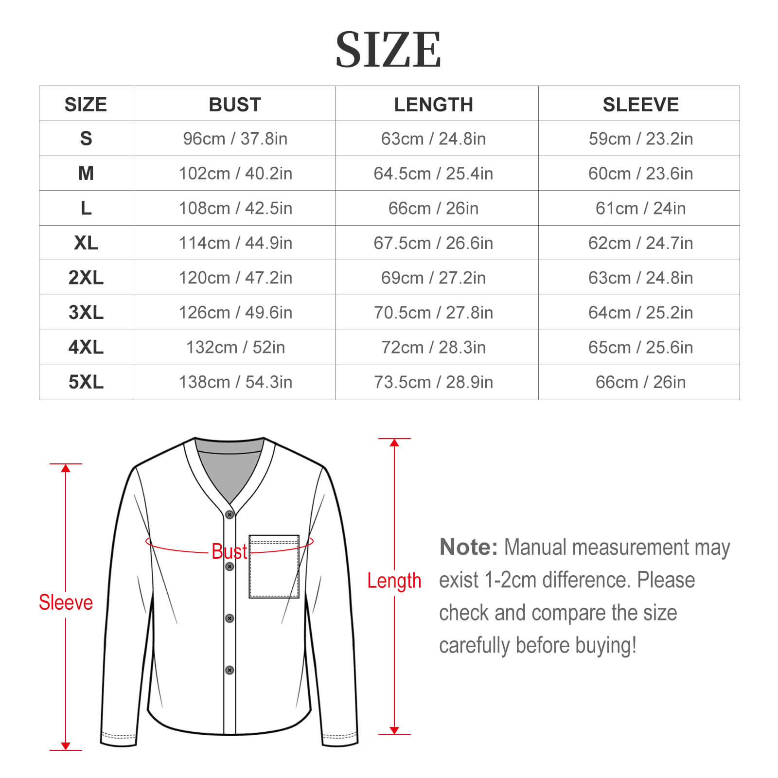 5XL 73.5 138 66 110 92-142 144