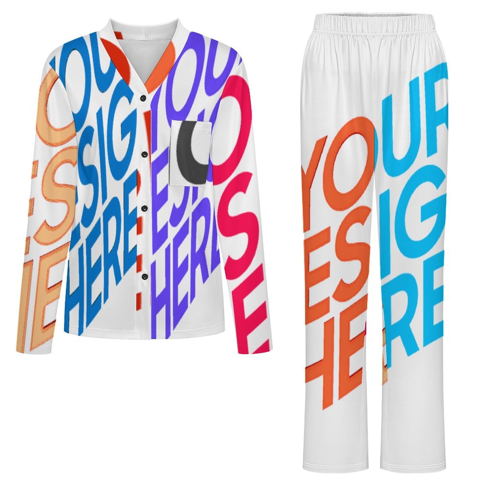 Conjunto de pijama de manga larga con cuello en V para mujer B99TZ personalizado con nombre y texto (diseño de varias imágenes)
