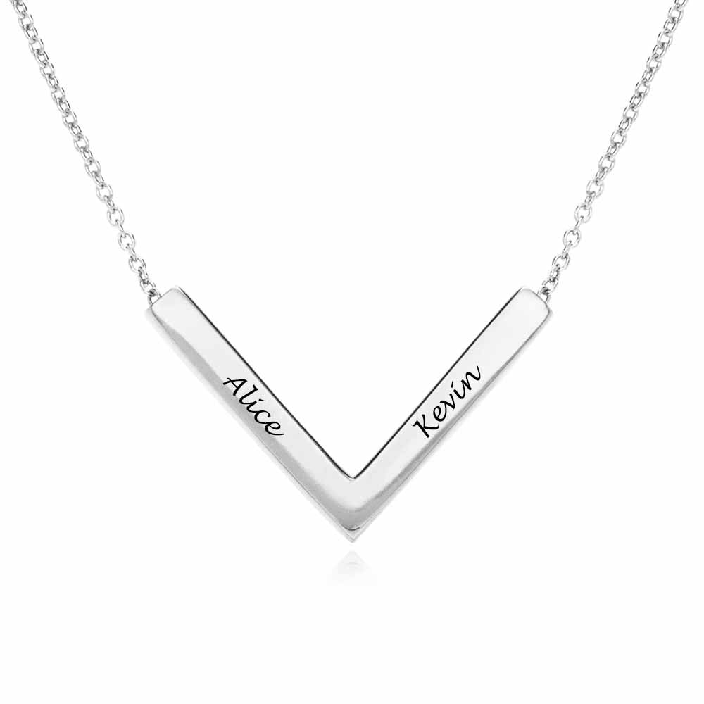 ¡Los detalles elegantes y sofisticados hacen que nuestro Collar barra forma de V ángulo recto en plata de ley 925 chapado de oro rosa de 18K para mujer hombre X0046 Personalizo con texto nombre sea uno de los favoritos! Con un aspecto atemporal, esta hermosa pieza de joyería presenta bordes suaves con una ligera curva para mayor comodidad. Grabe solo un lado o exprese su personalidad con inscripciones en los tres lados: la elección es suya.