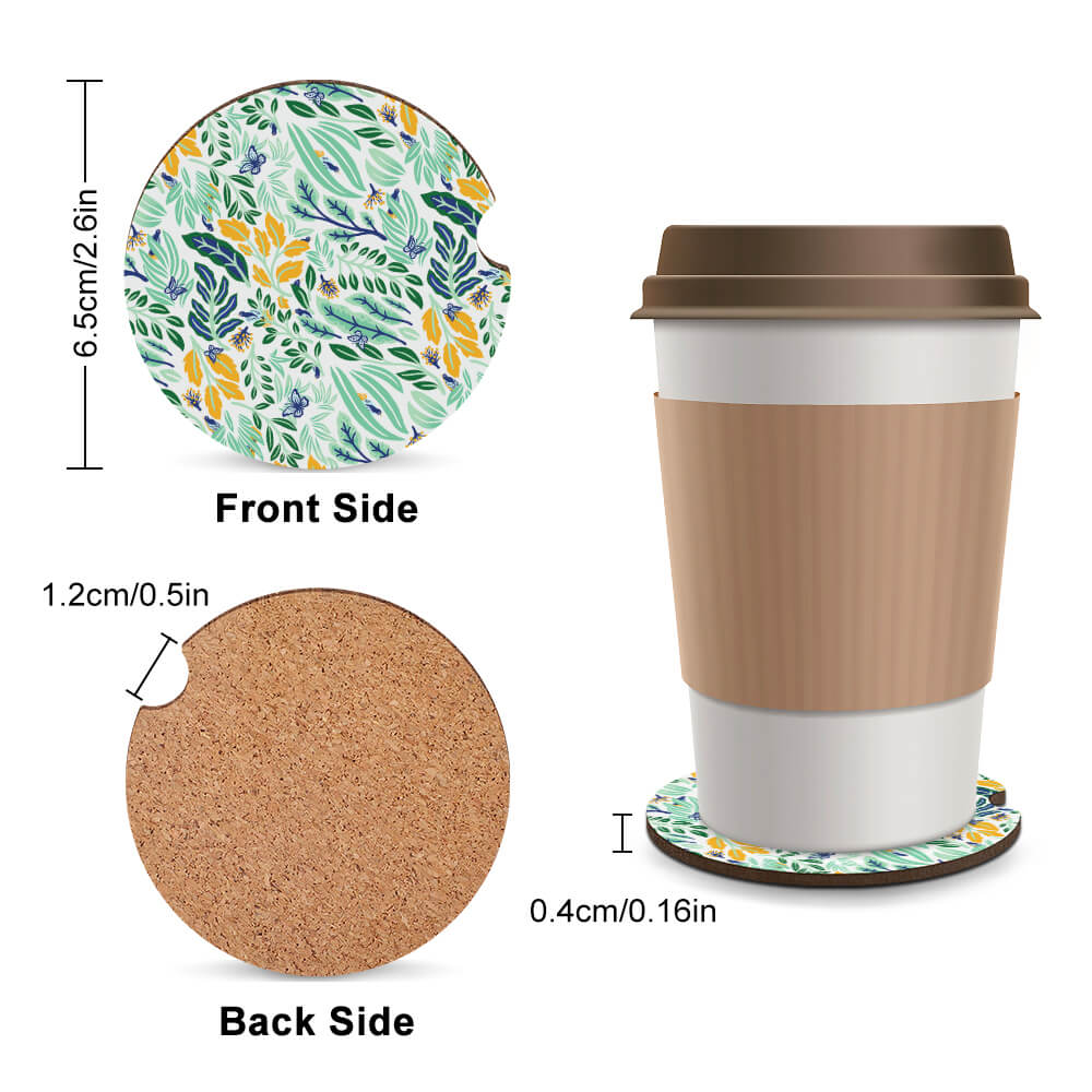 Este posavasos de coche de moda y duradero utiliza materiales ecológicos, seguros, no tóxicos, sin olores, aislantes térmicos, impermeables, a prueba de humedad y antibacterianos; la parte inferior del posavasos tiene un diseño de corcho, que tiene un efecto antideslizante eficaz y evita aterrizajes accidentales; el borde está cuidadosamente pulido y no es fácil resbalar y lastimarse las manos al tomarlo. Patrones prácticos y exquisitos en las esquinas, personalizables a voluntad.