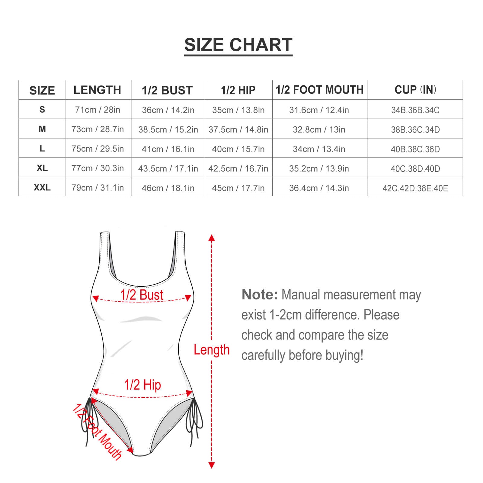 | Talla | Longitud(cm/in) | 1/2Busto(cm/in) | 1/2Cadera(cm/in) | 1/2Pernera(cm/in) | Cup(in) |