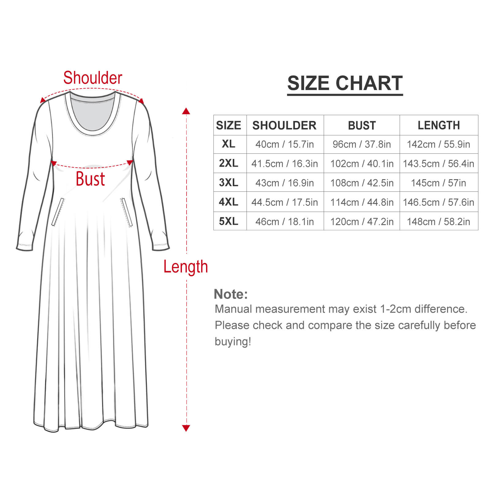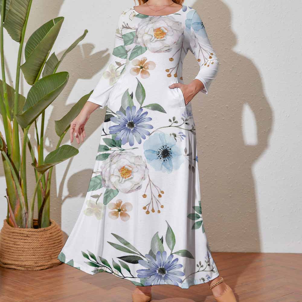Vestido holgado talla grande manga larga cuello redondo para mujer A120 Personalizado con Impresión Completa de una imagen con Foto Logo Patrón Texto