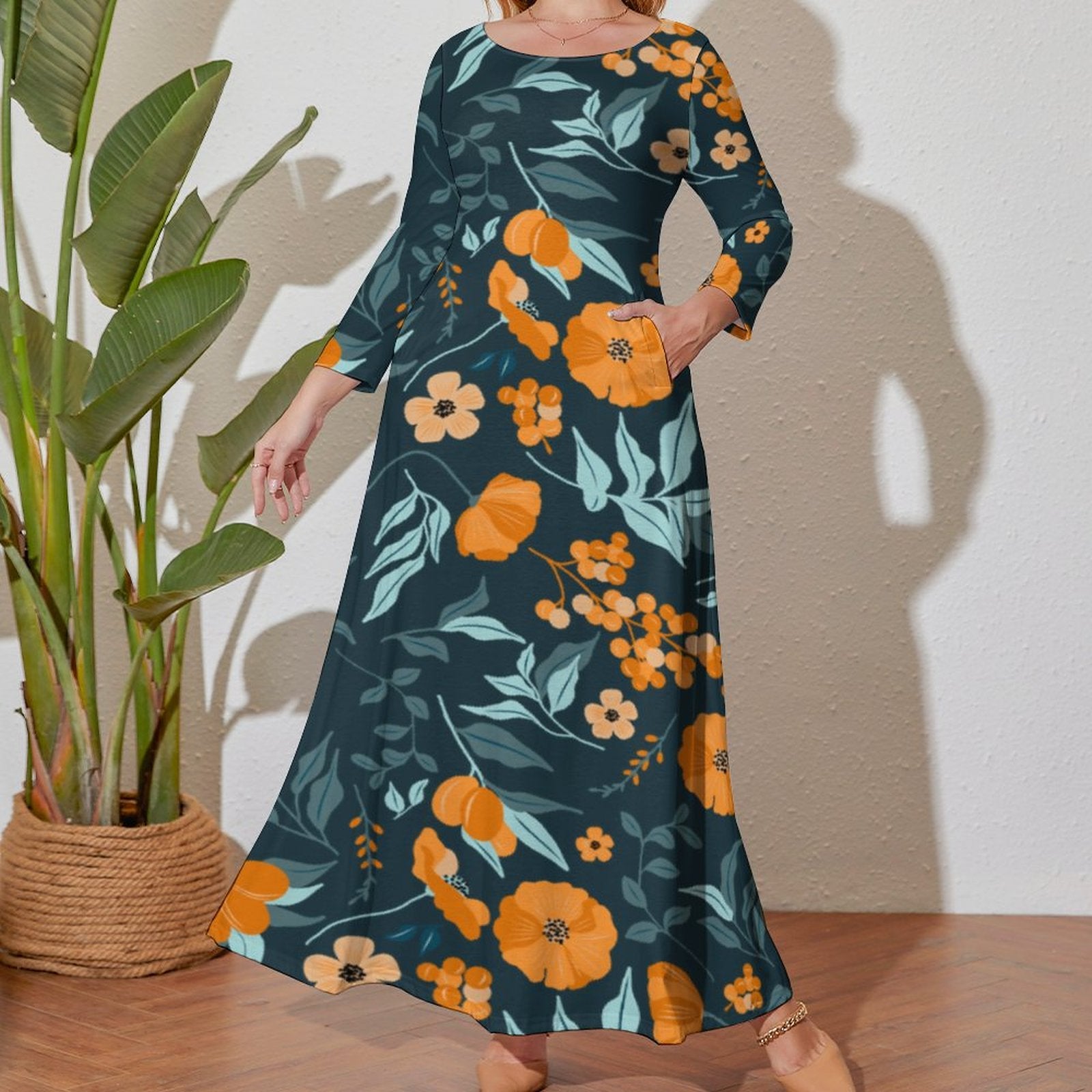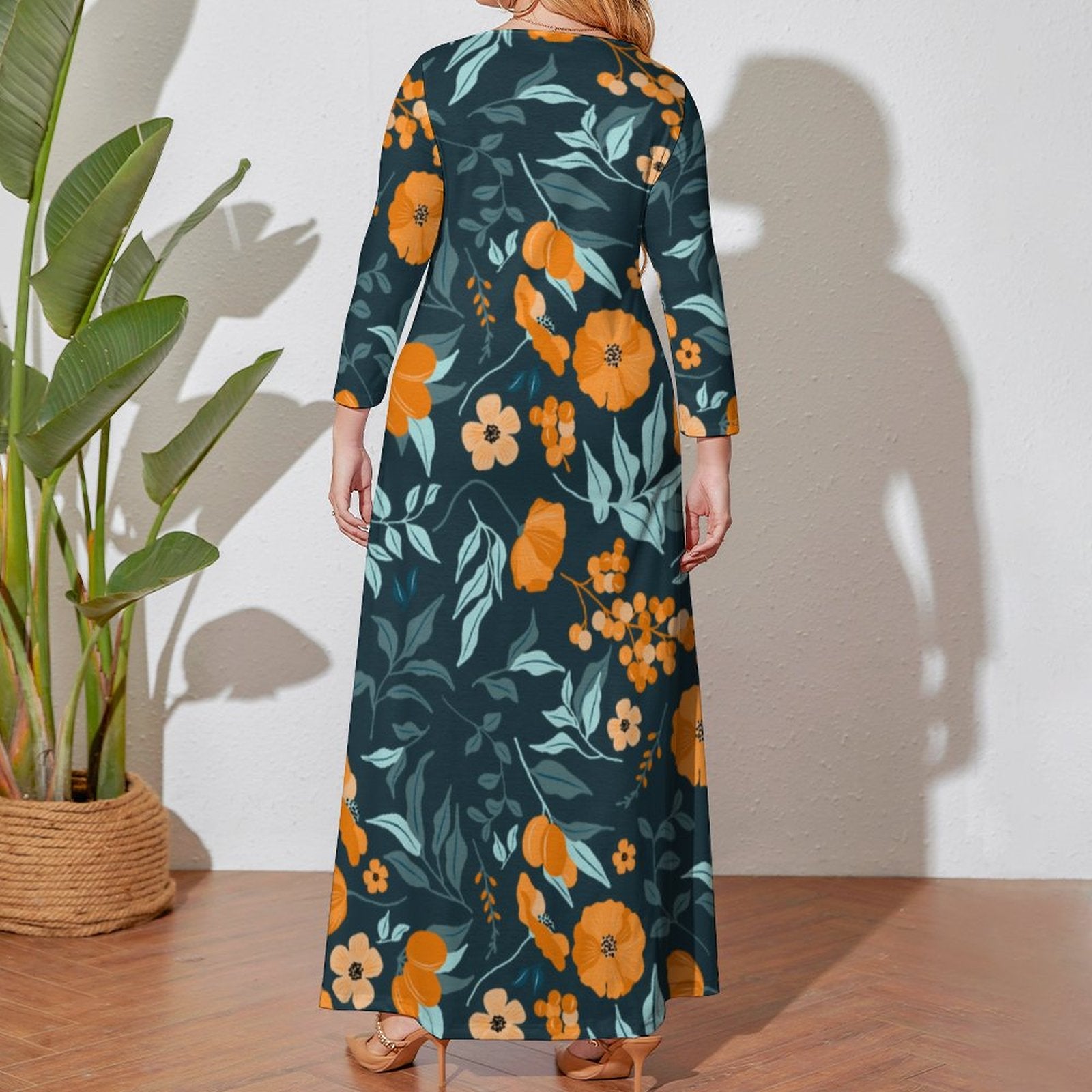 Vestido holgado talla grande manga larga cuello redondo para mujer A120 Personalizado con Impresión Completa de múltiples imágenes con Foto Logo Patrón Texto