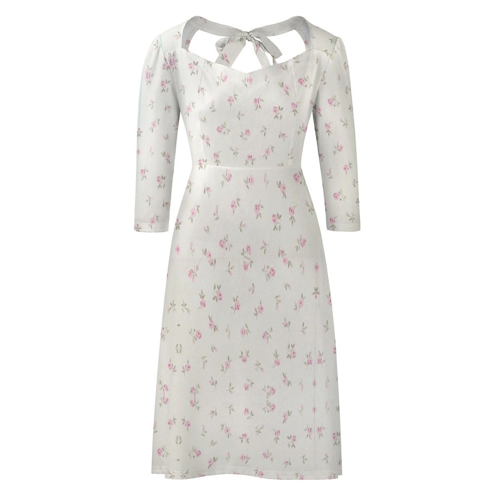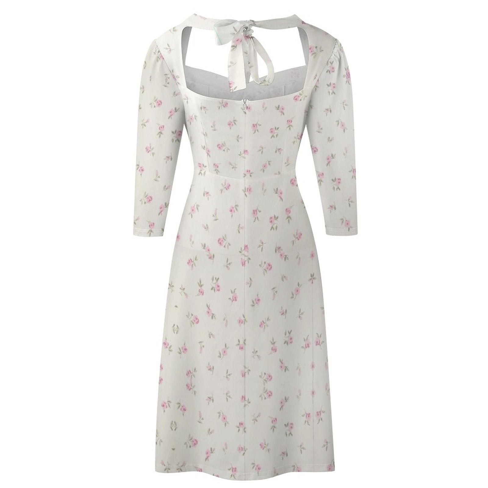 Vestido estampado cuello en V lazo espalda manga 3/4 para mujer B272 Personalizado con Impresión Completa de múltiples imágenes con Foto Logo Patrón Texto. Con los volantes, el vestido de verano que cubre las rodillas adquiere un aspecto divertido. La línea A acentúa tu cintura. El cuello se ve elegante cuando está abotonado, abierto realza su look de ocio. El tejido sólido es muy resistente y, por lo tanto, duradero. Puedes usar elegantes sandalias de tiras para la fiesta en el jardín de los vecinos. Si es un poco más fresco, también puedes combinar el vestido con una chaqueta de punto. Para un estilo casual, elige tenis o mules con tu atuendo. ¡El Vestido estampado cuello en V lazo espalda manga 3/4 para mujer B272 es una buena opción si te gustan los detalles con estilo!