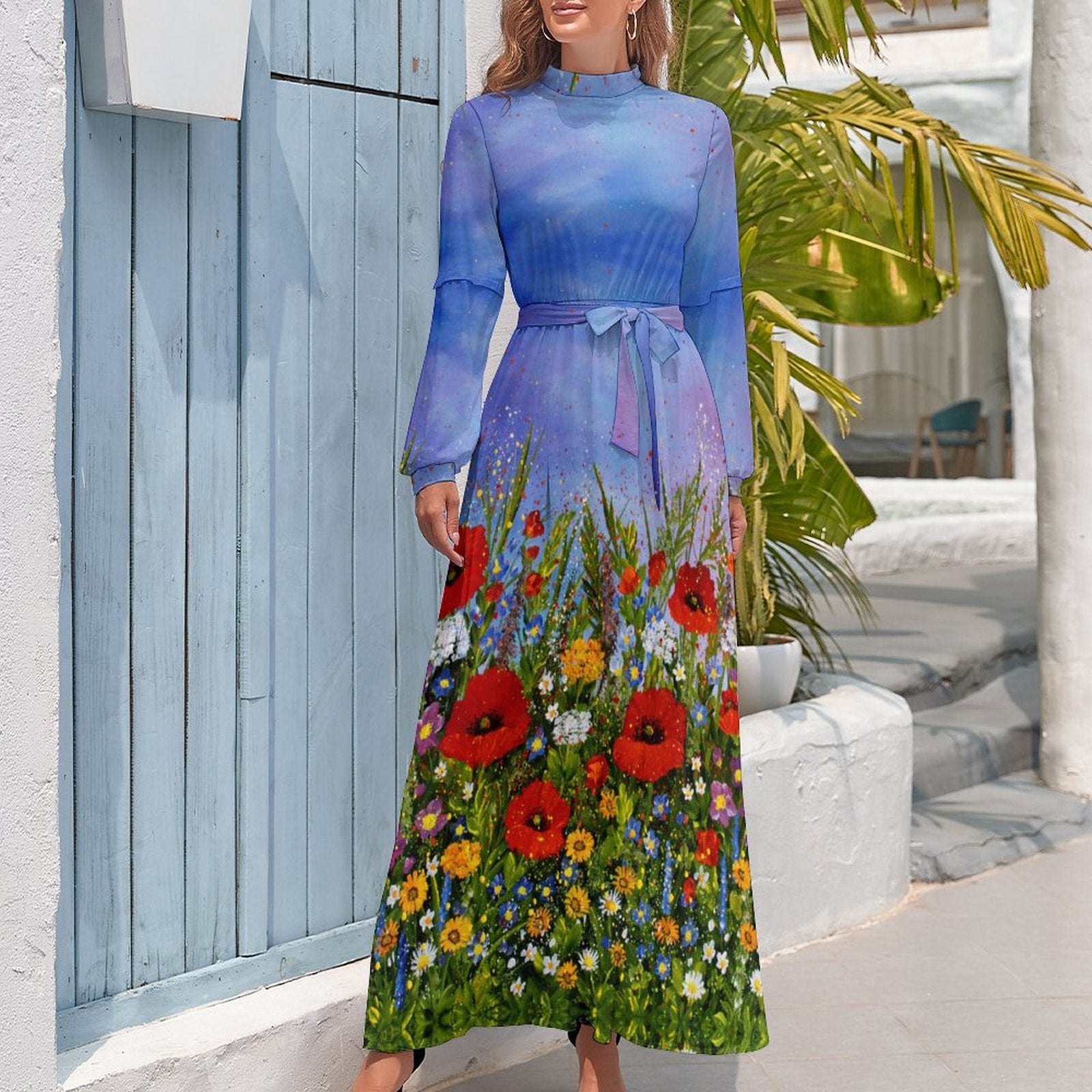 Vestido largo de cintura elástica elegante de moda para mujer XQ Personalizado con Impresión Completa de múltiples imágenes con Foto Logo Patrón Texto