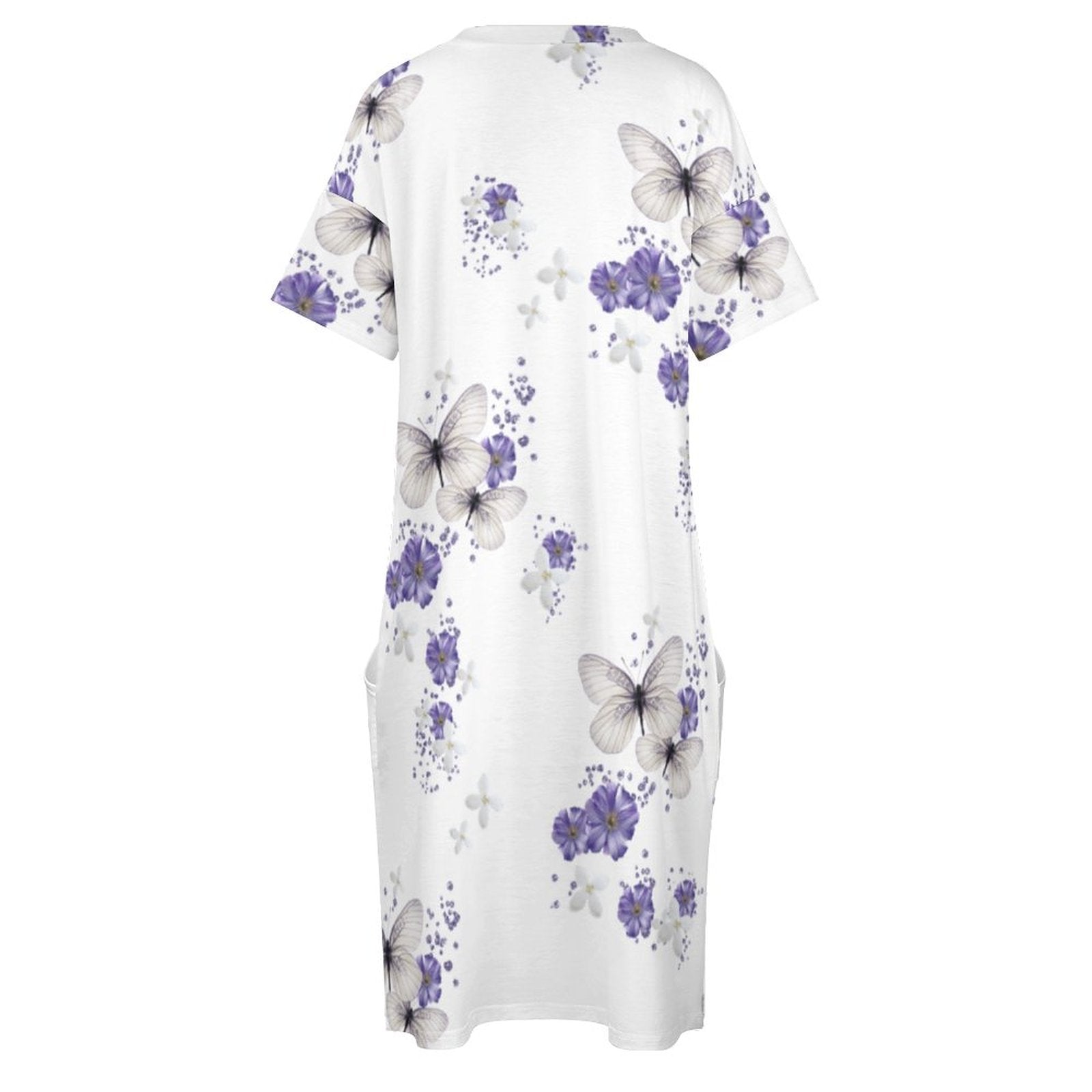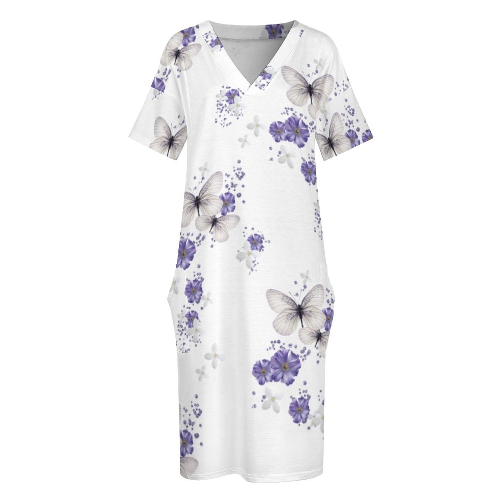 Vestido suelto con cuello en V bolsillo de moda para mujer LQ Confeccionado con materiales de alta calidad, el tejido es suave, cómodo y ligero.. Es sencillo y se puede combinar de diferentes formas. Vestido deportivo y elegante con estampado, Diseño retro con cuello en V, manga corta, diseño abotonado, fácil de usar, diseño suelto de gran tamaño, adecuado para la mayoría de las personas.