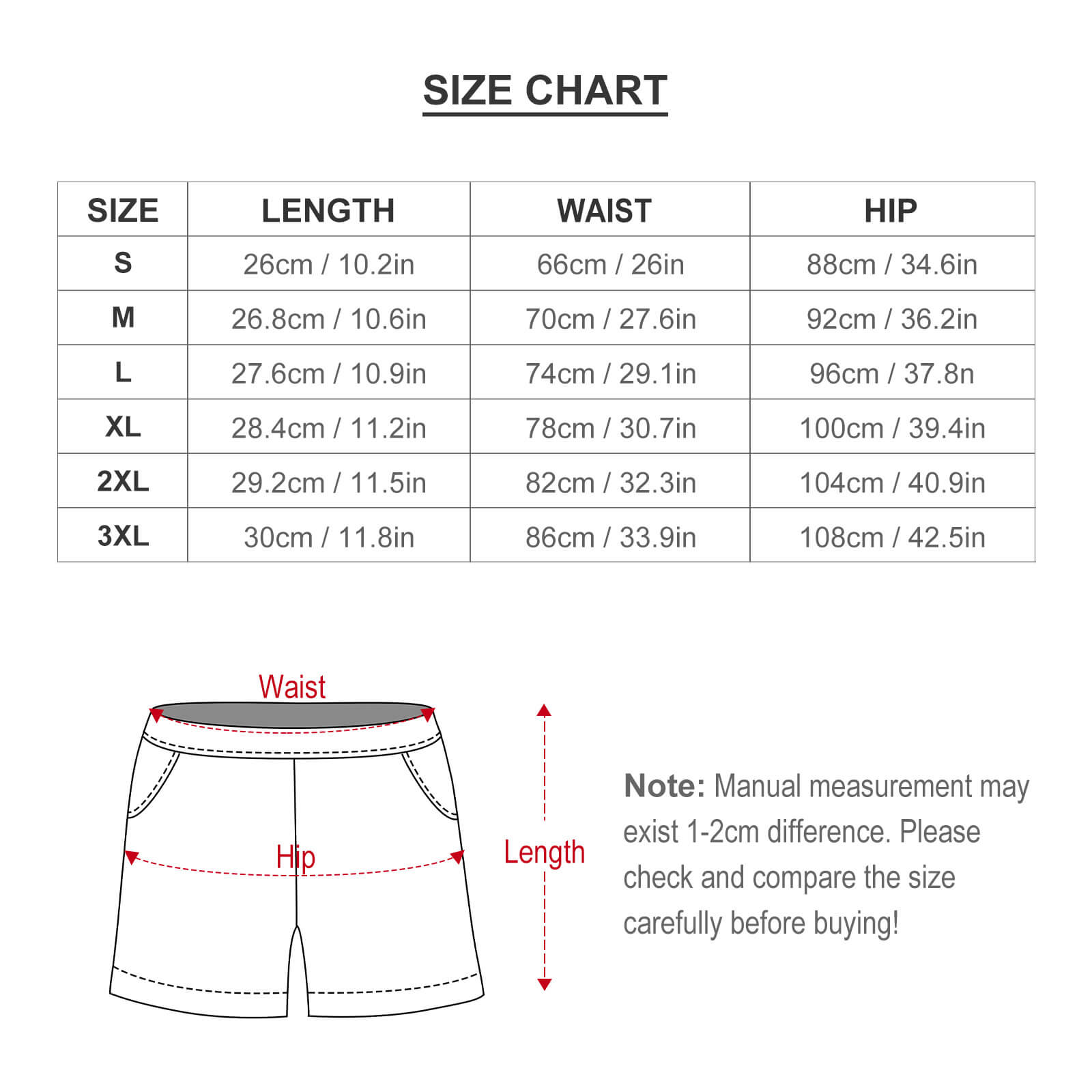 Nota especial: Las tallas de estos productos se refieren a las tallas europeas. Si tiene alguna pregunta, comuníquese con el servicio al cliente para una consulta. Estos datos de talla se miden en el estado desplegado. Debido a los diferentes métodos de medición, el error dentro de 1-2cm es un fenómeno normal. No utilice el mismo color que el de fondo de la ropa para las imágenes de diseño, causará la incapacidad de tinta durante la producción y los problemas anteriores son normales, no se incluirá en el alcance del tratamiento postventa.