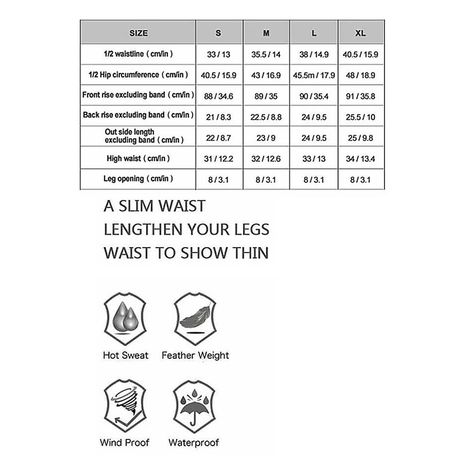 | Talla | 1/2Ancho de Cintura(cm/in) | 1/2Cadera(cm/in) | Eje delantero con cintura (cm/in) | Eje trasero con cintura (cm/in) | Longitud exterior con cintura (cm/in) | Cintura(cm/in) | Pernera(cm/in) |